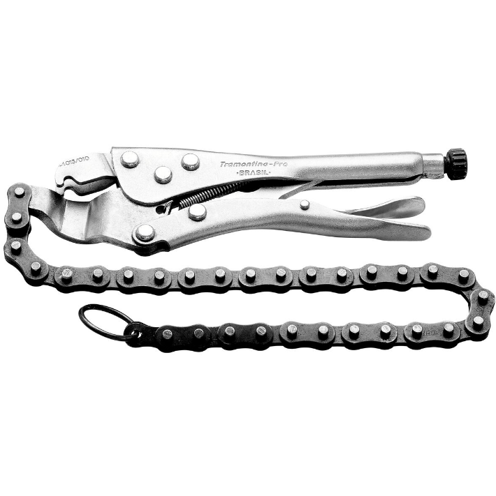 O Alicate de Pressão tipo corrente da Tramontina PRO é muito utilizado para apertar tubos endurecidos em locais de difícil acesso além de facilitar a colocação e remoção de filtros de óleo.