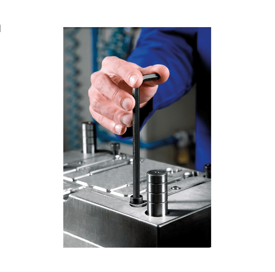 Seu corpo em forma de L com 2 braços de diferente comprimento, permite a aplicação de torque em parafusos posicionados em diferentes profundidades.