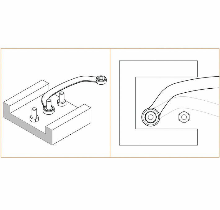 - Devido a sua forma, permite alcance a lugares onde não é possível entrar com chaves retas.