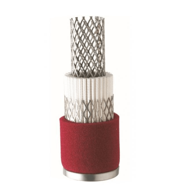 Possui área de filtração 5 vezes maiores a de qualquer outro elemento com a mesma dimensão, formato anatômico que facilita a substituição, vedação da carcaça com anéis o’ring, telas de aço inoxidável.