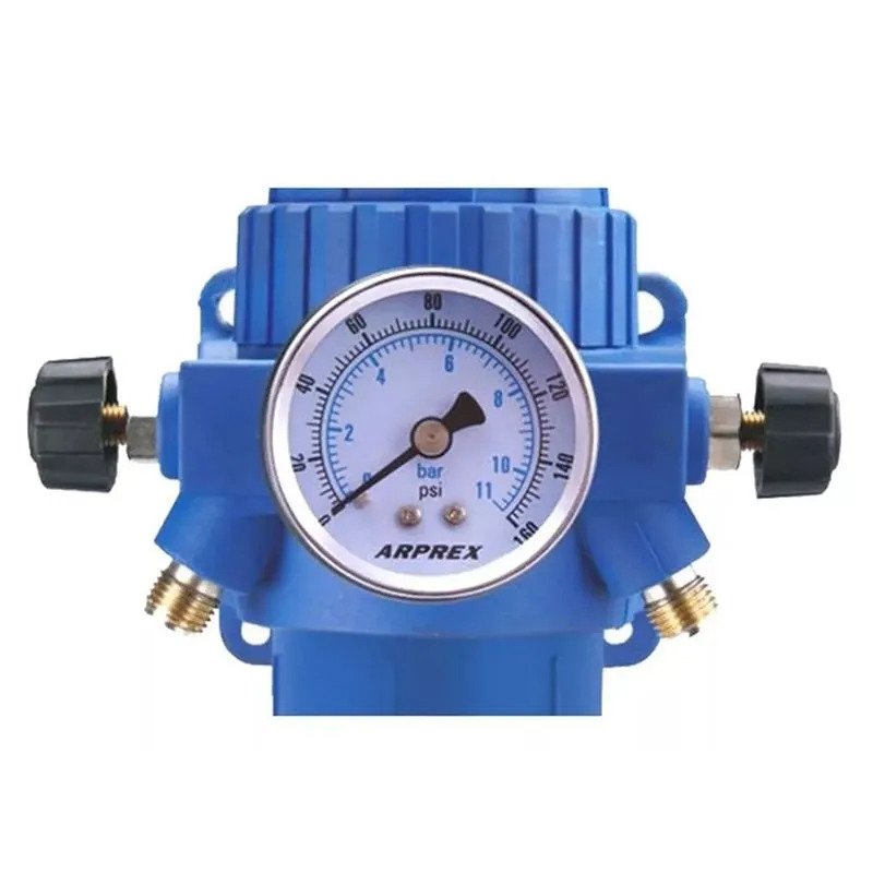 O Filtro processador de ar Centurium da Arprex elimina a presença de óleo, impurezas e partículas que possam prejudicar uma perfeita pintura. Regula a saída mantendo uma pressão e vazão constantes, permitindo uma vida útil mais longa do aparelho e aplicações mais uniformes e economiza energia, permitindo ao compressor espaços mais longos para recarga em virtude do controle de saída de ar.
