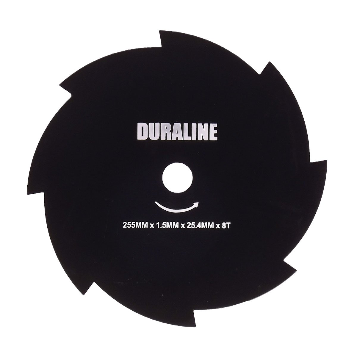 Lâmina de 8 pontas em aço vanádio. Com furo central de Ø 20mm, 255mm de largura de corte e 1,5mm de espessura. É indicada para corte de grama, relva, capim pesado, touceiras e pequenos arbustos.