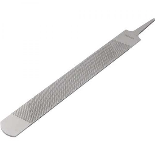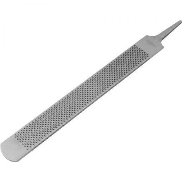 Possui cantos/laterais com picado simples, uma superfície com picado grosso para desbaste e uma superfície com picado mais fino para acabamento.