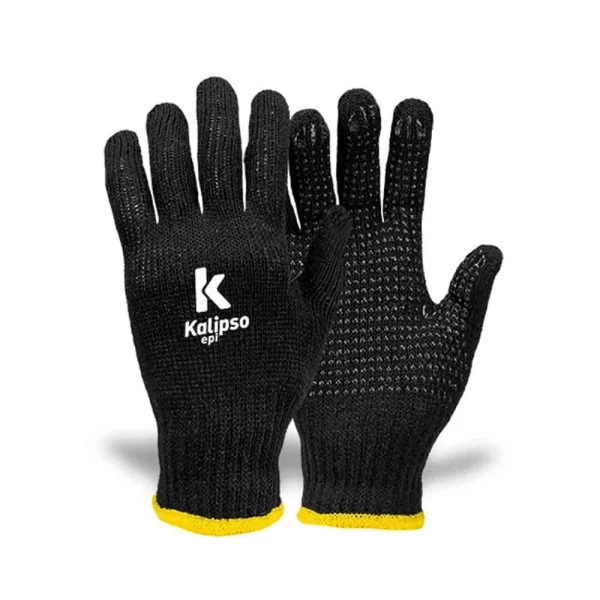 Luva de Algodão Tricotada Pigmentada Tatex Preta da Kalipso, um equipamento de proteção individual (EPI) essencial para garantir a segurança e o conforto das mãos durante diversas atividades. Com o Certificado de Aprovação CA - 34491, estas luvas são perfeitas para serviços de limpeza, indústria agrícola, construção civil e muito mais.