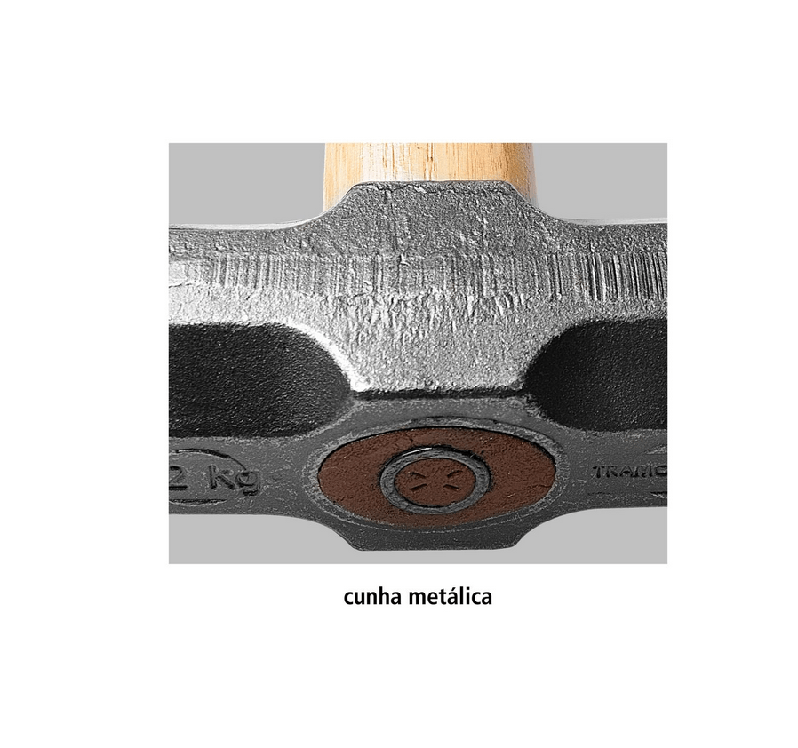 É produzida com cabeça em aço especial e cabo em madeira, que leva mais segurança ao manuseio, já que é fixado à cabeça por cunha metálica.