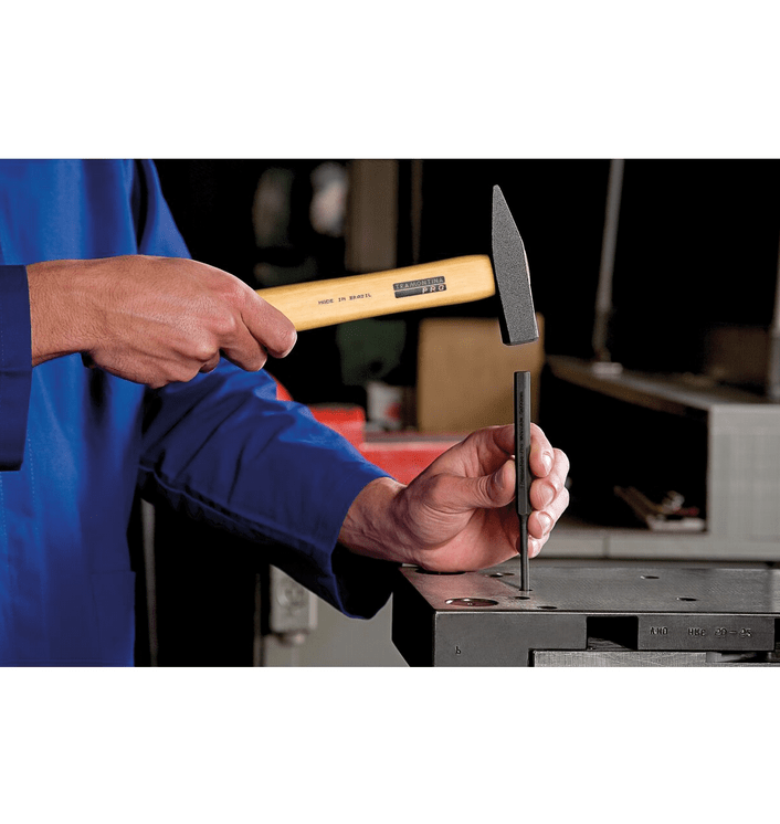 Indicados para rebitar, formar e endireitar metal, além de golpear talhadeiras, punções, saca pinos, vazadores, entre outros, o martelo de pena da Tramontina PRO possui cabo de madeira fixado à cabeça por cunha metálica, o que garante segurança no uso.