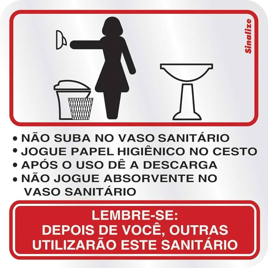A placa de Procedimentos Sanitário Feminino é confeccionada em alumínio adonisado, medindo 15x15 cm , já com fita dupla face total para facilitar a aplicação com o acabamento dos cantos arredondados Características do Produto: - Dimensões aproximadas (Altura x Largura x Comprimento): 0,05 x 17,3 x 22,2 cm - Cor: Prata com preto e vermelho - Cod. Ref.: 120AI - Material: Alumínio - Quantidade: 1 Peça - Peso do produto: 0045g