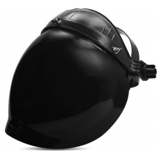 Protetor Facial de Segurança, constituído de carneira de material plástico com regulagem de tamanho através de catraca acoplada à coroa por meio três parafusos metálicos e visor de polietileno tereftalato incolor com formato esférico com cerca de 200mm de largura e 190mm de altura.