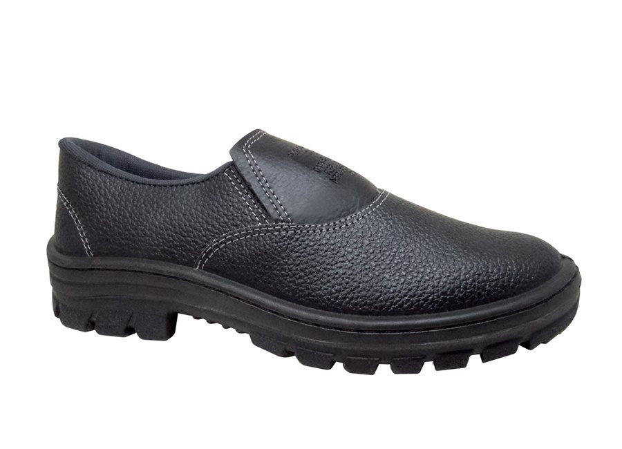 Sapato confeccionado em couro, fechamento em elástico, sem biqueira, solado monodensidade injetado direto ao cabedal e blaqueado.