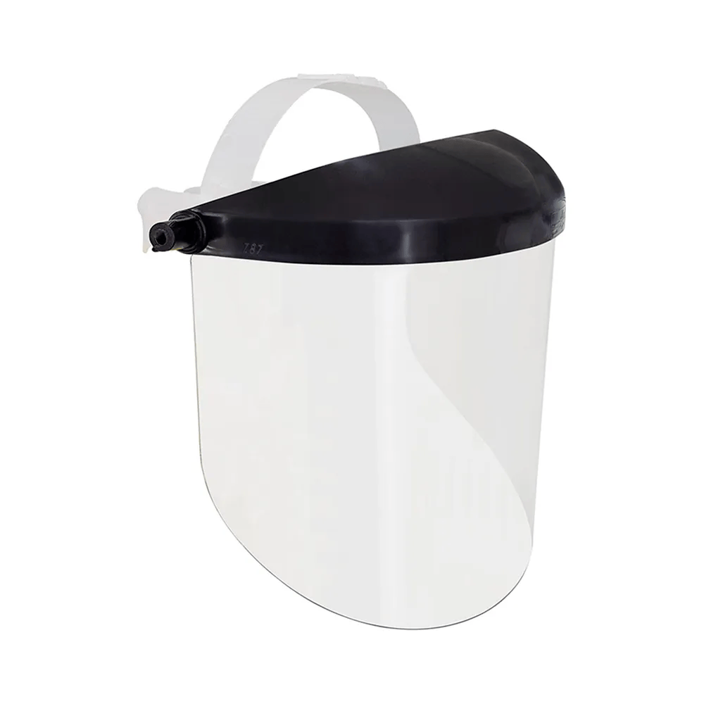Protetor Facial Plastcor com visor confeccinado em policarbonato incolor com proteção UV, testeira em material plástico, suspensão com ajuste simples e tira com espuma para absorção de suor.